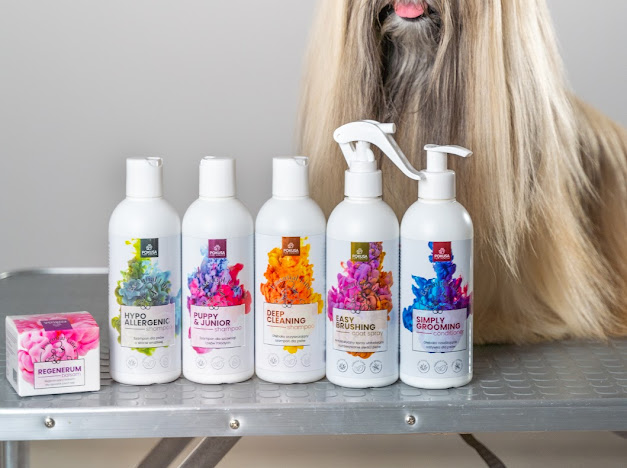 Dankzij de milde reinigingsmiddelen reinigt de shampoo de vacht en huid grondig zonder irritatie te veroorzaken of de huid uit te drogen. De vacht wordt schoon en glanzend, hydrateert intensief en verzorgt de vacht. Aardbei- en frambozenextracten reinigen de huid en ontstoppen de poriën. Aloë vera-extract ondersteunt de regeneratie van beschadigde huid en kalmeert irritatie.